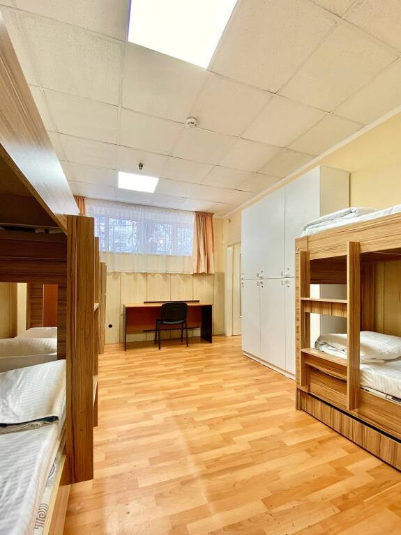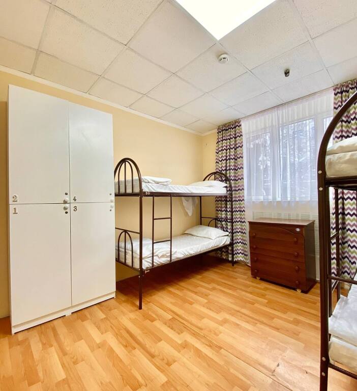 Кровать в общем номере (мужской номер) с красивым видом из окна