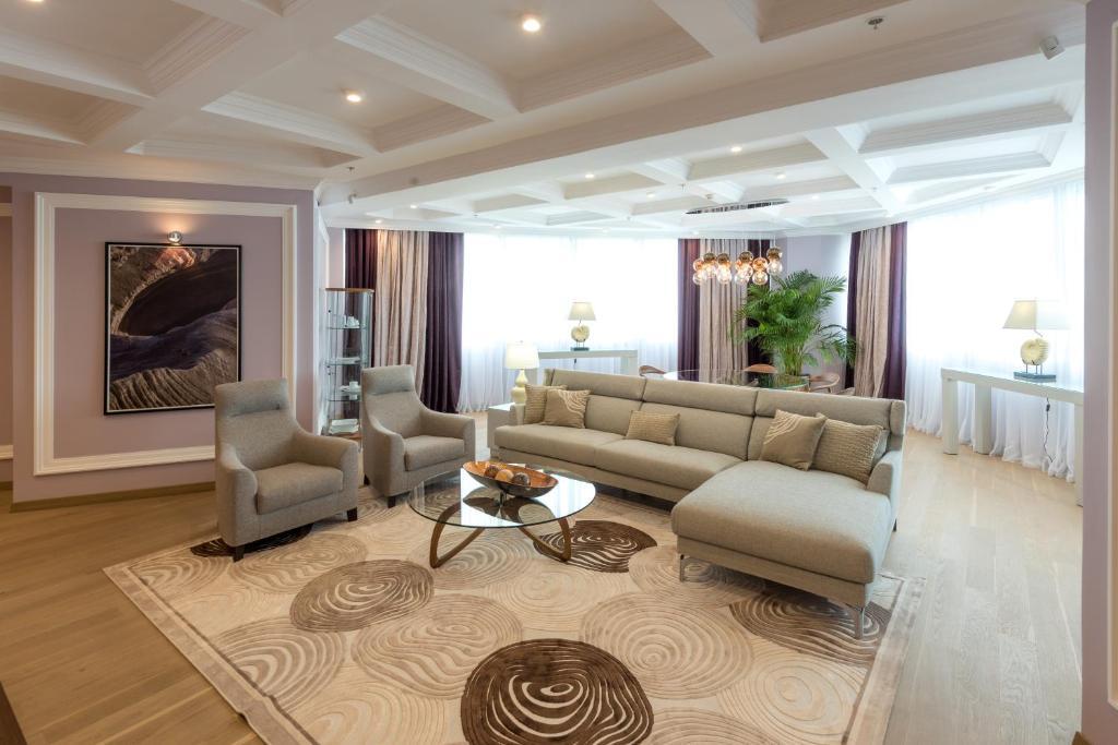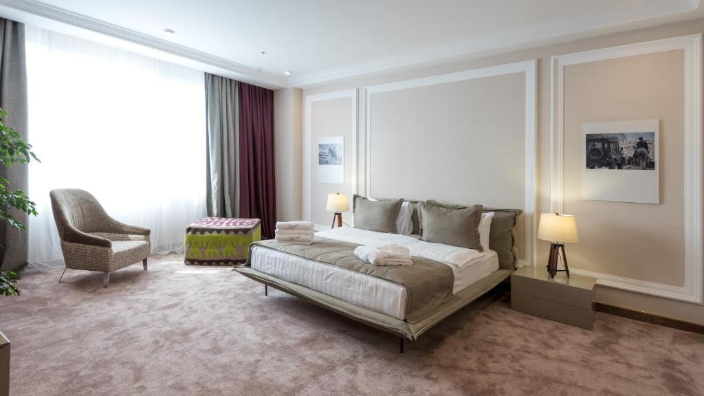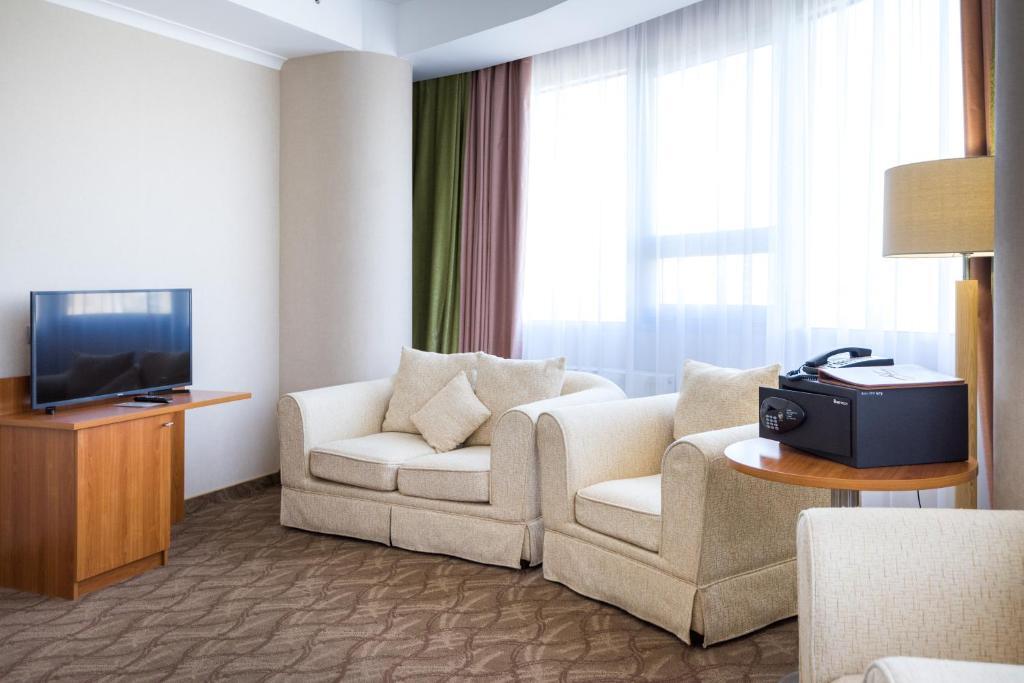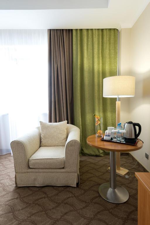 Дорогие друзья! Отель хорош! Правда! Наше первое впечатление было довольно восторженным: приветливые охранники и ресепшен, красивая отделка, футуристичный дизайн, волшебные лифты, уносящие ввысь, откуда открывается необыкновенная панорама как на внутреннюю архитектуру, так и на город за огромными окнами... И... Пожалуй, всё. Дальше восторг сменился огорчениями: номера не готовы к приему гостей (при том что мы приехали самыми последними из конкурсантов, участвовавших в фестивале) - кое-где в урнах оставался мусор, в туалетных комнатах присутствовали грязные раковины и унитазы, полотенца в основном только для ног, маленькие и большие нужно было выпрашивать; выпрашивать приходилось и уборку номера, хотя бы мусор вынести; в одном номере окно хлопало, в другом было заколочено намертво; от одного из номеров ключи приходилось менять ежедневно - думаю, стоит проверить замок, а не предлагать постояльцам с 17-го этажа ездить на 1-й и обратно за новым ключом???; оказалось, что нам не положены халаты, мол, так был составлен договор с организаторами конкурса. Но при этом в одном из номеров мило забыли два халата. И без проблем выдали ещё один на рецепшен по просьбе одной из наших девочек, когда она попросила об этом перед посещением бассейна. Однако спустя пару часов другим участникам нашего коллектива отказали в этой услуге (тогда-то мы и узнали, что по договору мы на это не имеем права) и предложили нам арендовать вещь, сообщив, что стоит это 6000 тг. Остаётся только уточнить, что на наш вопрос - мы его покупаем? - нам довольно надменно пояснили, что это наши проблемы. Но хочу заметить, что по надменности и хамству всех переплюнул персонал ресторана "Айгерим". Это стоит отдельного упоминания. Кипяток для чая добыть было довольно сложно. КАЖДЫЙ прием пищи сопровождался подачей холодных блюд. На просьбу подогреть их нам отвечали, что им негде (????????). Плов - холодный, каша - холодная, спагетти - холодные. Официантка, швырявшая с беспрерывным цоканием языком и отвращением на лице тарелки на стол, сказала, что спагетти едят холодными. На наше возмущение администратор зала сказал, что это практиканты. Некоторые из них позволяли себе играть в догонялки в зале, что нередко приводило к бою посуды, одну из наших учениц облили компотом, суп подали на грязную скатерть в облитых жиром чашках. Я старалась нивелировать острые углы, спокойно реагировать и благодарить за исправление ситуаций. Но, товарищи, это просто ДНО!!! Сдали даже мои нервы. Я понимаю, что, возможно, администрация отеля ни при чём, всё в аренде. Но тогда вам следует что-то решить со своими арендаторами. Когда мы едем на конкурс, мы не просим у вас подачек, не оставляем за собой грязь, не ссоримся ни с кем, не хамим и не корчим из себя звёзд с повышенными запросами. Когда всё это началось, мы никому ещё даже слова сказать не успели, кроме "Здравствуйте!". Почему мы остались без нормального питания как минимум? За него мы заплатили мало денег? Мы оплатили всё, что нам озвучили, и в этот список не входили все перечисленные мной "бонусы". Хорошее впечатление у нас осталось только от охранников, персонала нижнего бара (холл за лифтами) и ресторана "Томирис" на 16-м этаже, где нам "посчастливилось" поужинать накануне отъезда. Спасибо им за добросовестную работу и разрешение немного помузицировать на рояле в центре зала))) Очен