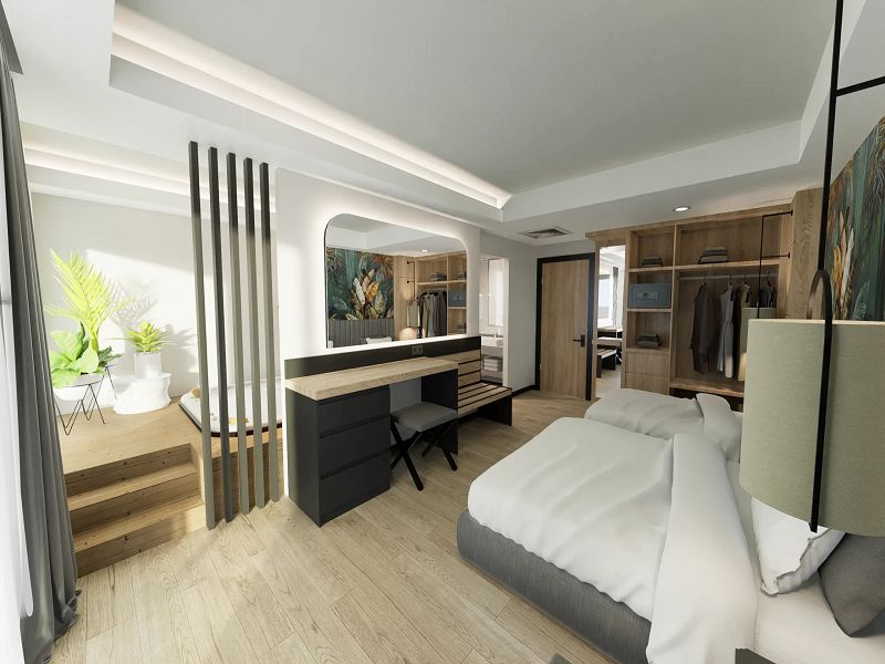 Однокомнатный номер с меблированной террасой и прямым выходом к бассейну. Гостям предлагается на выбор двуспальная или две односпальные кровати и диван. Удобства включают кондиционер, сейф, телевизор, мини-бар, телефон, набор для приготовления чая/кофе. Ванная комната с душем, феном, банными принадлежностями, тапочками.